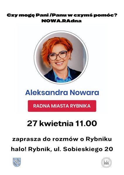 Radna Aleksandra Nowara zaprasza do rozmów o Rybniku, co można ulepszyć, z czym macie Państwo problem, a może coś chcielibyście zmienić w naszym mieście?
