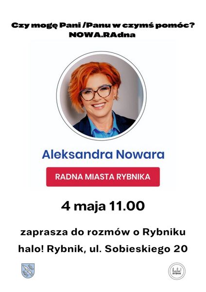Radna Aleksandra Nowara zaprasza do rozmów o Rybniku, co można ulepszyć, z czym macie Państwo problem, a może coś chcielibyście zmienić w naszym mieście?