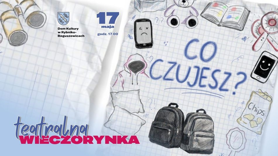 Zapraszamy na wyjątkowy spektakl najstarszej Grupy Teatralnej KIWI działającej w Domu Kultury Boguszowice. Młodzi bohaterowie tej historii zmierzą się z emocjami, relacjami i odwagą wychodzenia ze swojej strefy komfortu.