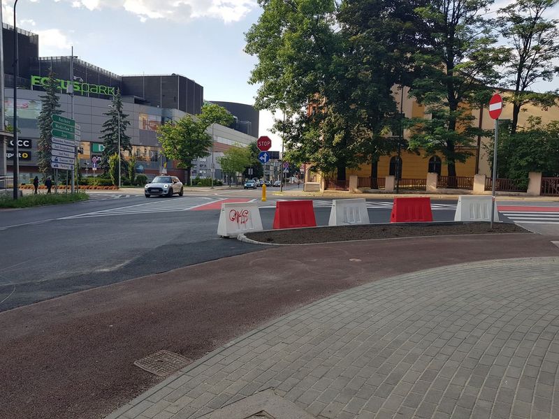 - pas zieleni oddzielający drogę dla rowerów od pasów dla pojazdów (wkrótce wykone będą nasadzenia)