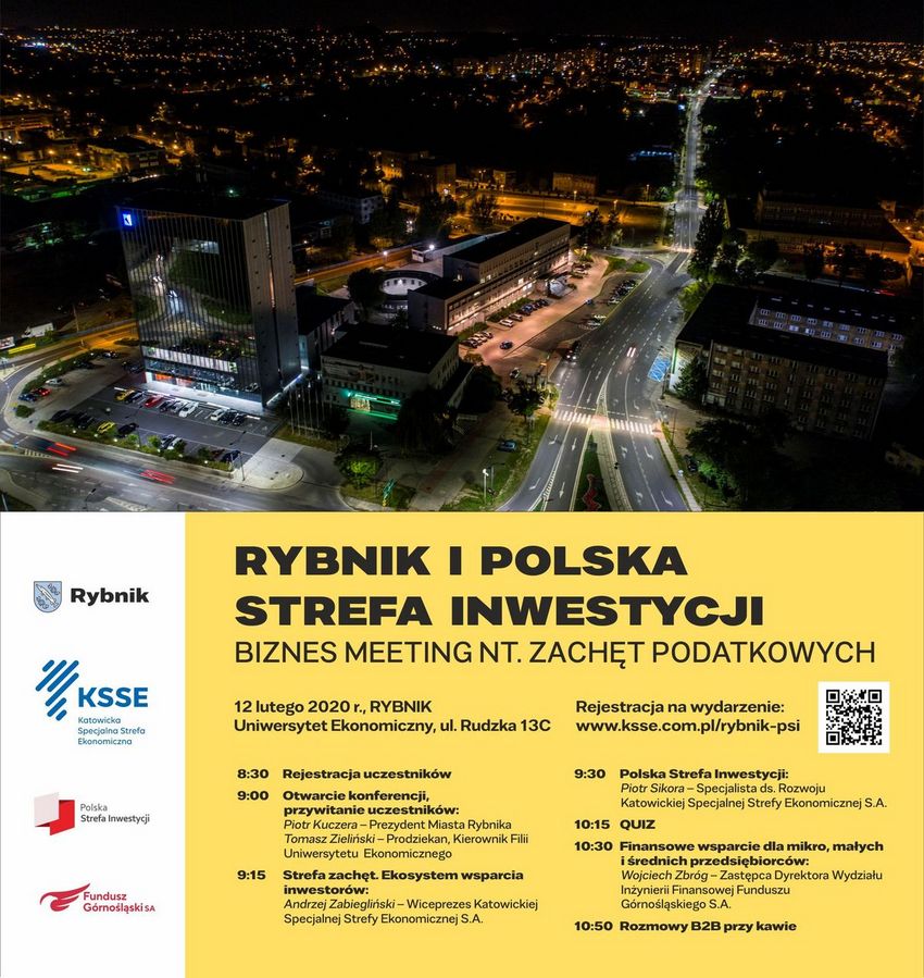 Konferencja odbędzie się 12 lutego br. w auli Filli Uniwersytetu Ekonomicznego na rybnickim kampusie (ul. Rudzka 13C), a jej celem będzie przedstawienie zasad funkcjonowania tzw. Polskiej Strefy Inwestycji, czyli zachęt oraz ulg podatkowych, z których mogą korzystać przedsiębiorcy w przypadku realizacji nowych inwestycji, również poza granicami ustanowionych specjalnych stref ekonomicznych.