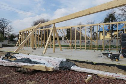 Kłokocińskie Centrum Aktywności Lokalnej powstaje u zbiegu ulic Brackiej i Chłodnej. Będzie się ono składać z dwóch budynków: głównego, zaplanowanego jako miejsce spotkań, wraz z lokalem użytkowym i zapleczem sanitarnym oraz wiatę z siedziskami.