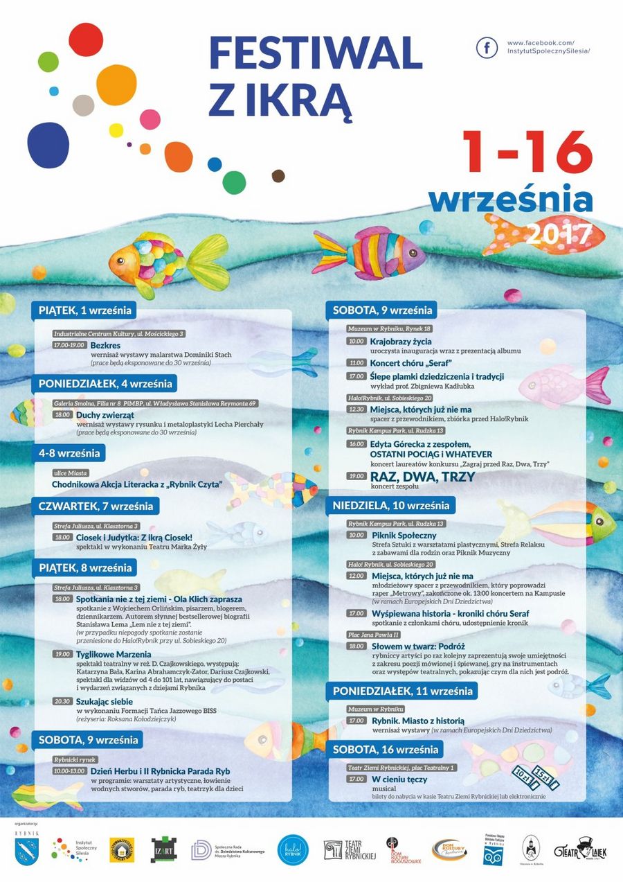 Festiwal z Ikrą to m.in. Dzień Herbu i II Rybnicka Parada Ryb. Przez centrum miasta przejdzie barwny korowód nawiązujący do symboliki miasta, nie zabraknie przy tym warsztatów i animacji artystycznych.
