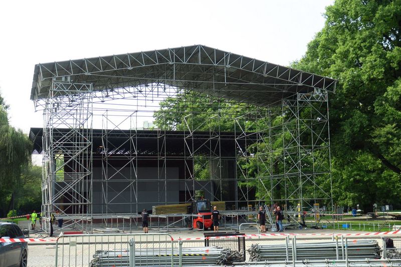 Tymczasem na terenie kampusu trwa już montaż koncertowej sceny – zapraszamy do zobaczenia zdjęć: