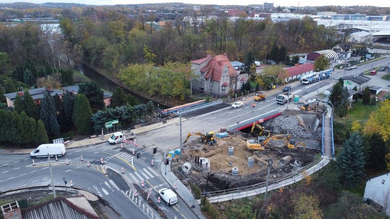 Prace przy przebudowie obu obiektów prowadzone były jednocześnie od lutego br. Od marca kierowcy poruszali się powstałym po sąsiedzku wiaduktem tymczasowym, który zapewniał przejezdność drogi i ewentualny ruch pieszych, podczas budowy nowego, głównego wiaduktu. Budowa mostu nad Rudą wiązała z koniecznością korzystania z wyznaczonych objazdów.