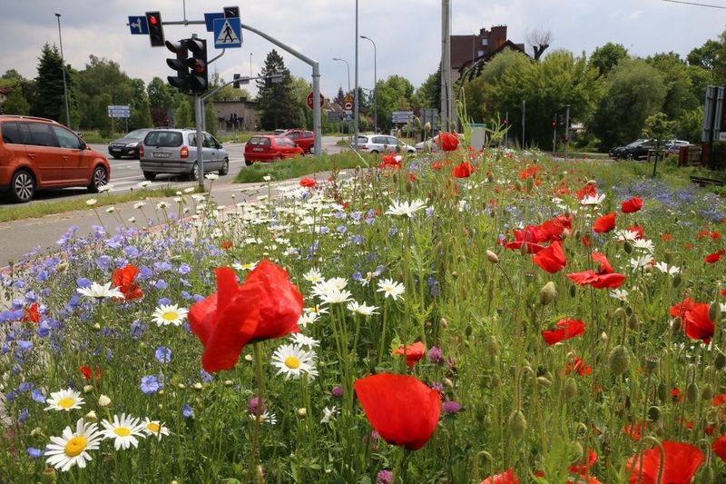 Aktualnie kwitnie 2500 metrów kwadratowych łąk przy ul. Kotucza, przy węźle Chwałowicka, przy rondzie Kozie Góry oraz wokół tężni solankowej.