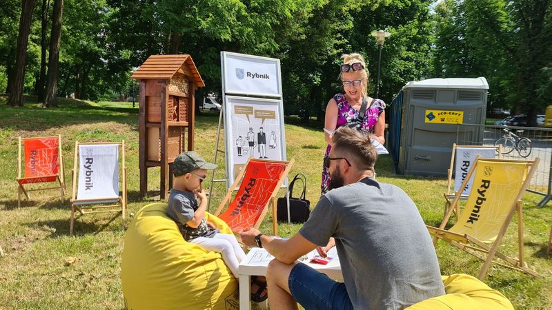 Przez 5 festiwalowych godzin trwały indywidualne spotkania i rozmowy z różnymi grupami wiekowymi. Była to też okazja do wypełniania ankiet (dla dorosłych, młodzieży i dzieci) oraz zapoznania się z mapami planowanego w Rybniku parku kulturowego czy broszurami Narodowego Instytutu Dziedzictwa związanymi z ogólną tematyką parków kulturowych.