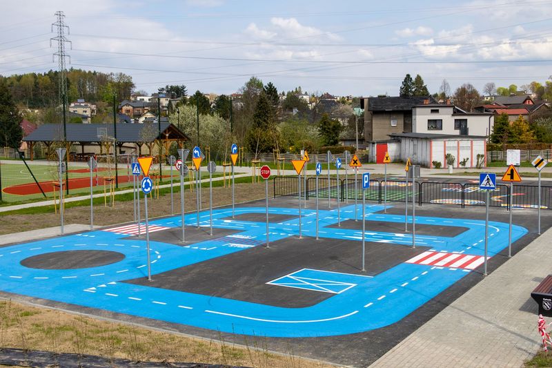 W jego ramach powstała strefa rowerowa z nawierzchnią asfaltową, miasteczko ruchu drogowego oraz przestrzeń do gier podwórkowych. Całość uzupełniły nowe nasadzenia i elementy małej architektury.