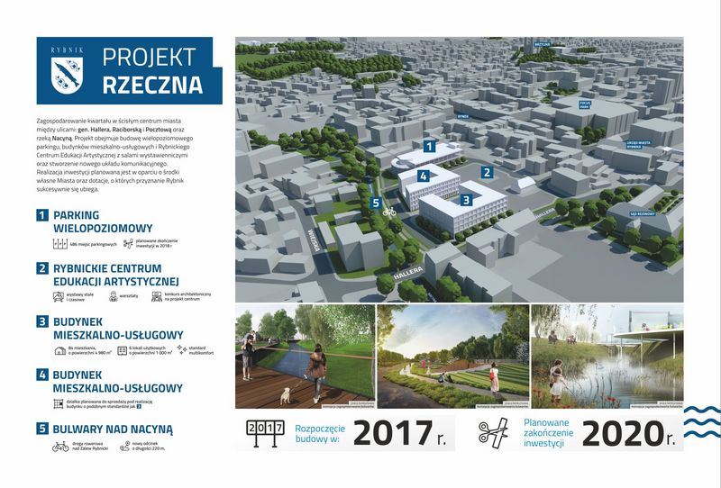 Przygotowany przez miasto „Projekt Rzeczna”, którego częścią jest budowa parkingu wielopoziomowego, obejmuje również powstanie budynków mieszkalno-usługowych i Rybnickiego Centrum Edukacji Artystycznej z salami wystawienniczymi oraz stworzenie nowego układu komunikacyjnego.