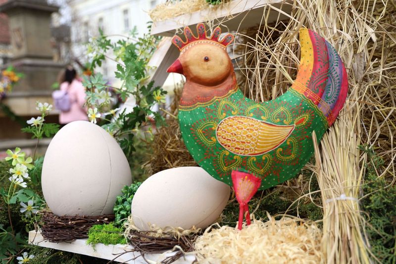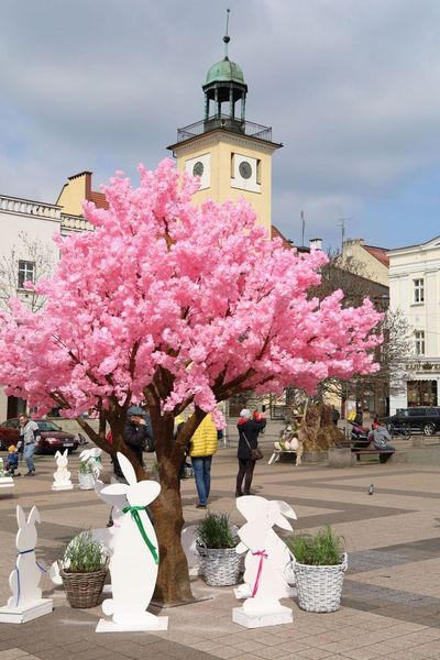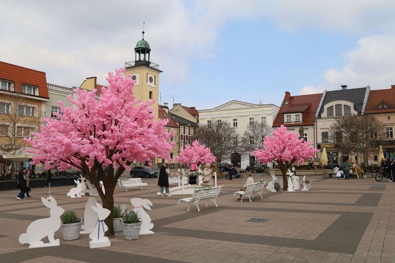 Na rybnickim rynku witają nas cztery kwitnące na różowo wiśnie, a pod nimi otoczone wielkanocnymi zającami ławki, na których można przysiąść, ciesząc się wiosną i świąteczną atmosferą. Świątecznie udekorowana została również rynkowa fontanna, wokół której pojawiły się wiejskie grzędy z kurami, blaszanymi kogutami i pisankami.