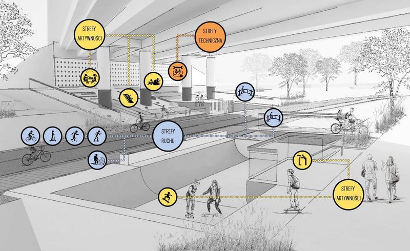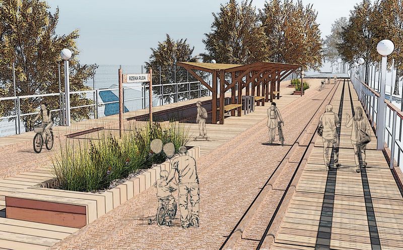 Dodatkowo zaplanowano wybudowanie wzdłuż całego odcinka drogi rowerowej dodatkowej infrastruktury dedykowanej pieszym, a także innym użytkownikom takim jak np. rolkarze, którzy nie powinni mieszać się co do zasady z ruchem rowerowym. Wspomniana infrastruktura będzie oddzielona od drogi rowerowej pasem zieleni. Ponadto w ramach zwiększenia atrakcyjności dla korzystających przewidziano wykonanie i montaż w wyznaczonych miejscach wzdłuż trasy rowerowej i pieszej następujących elementów: wiaty, skatepark, pumptrack, wielościany do wspinaczki, głazy ozdobne, leżaki rekreacyjne, ławki, kosze na śmieci.