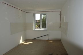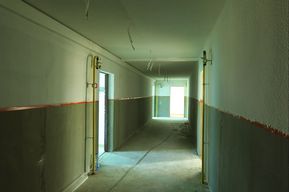 Roboty budowlane w budynku byłego internatu przy ul. Borki 37C ruszyły w sierpniu ubiegłego roku. Najpierw wykonano prace rozbiórkowe – m.in. podłóg, szaf wnękowych, instalacji sanitarnych, armatury, kominów, ścianek działowych, luksfer na klatce schodowej, posadzek tynków ścian i sufitów.