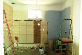 Na dalszym etapie zrealizowano wewnętrzne roboty budowlane – zamurowano otwory w ścianach, wymurowano ścianki działowe, uzupełniono stropy po kominach. Wymurowano też kominy spalinowe, wykonano tynki gipsowe ścian i sufitów oraz nowe wylewki cementowe w mieszkaniach. Ta część inwestycji obejmowała ponadto zabudowanie fasady szklanej klatki schodowej oraz wymianę stolarki okiennej w mieszkaniach.