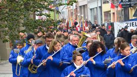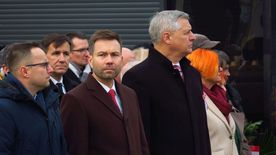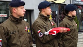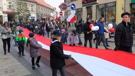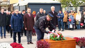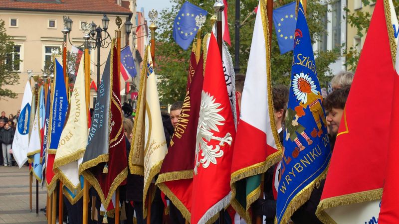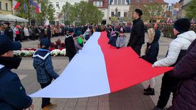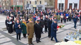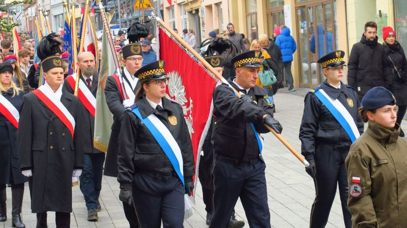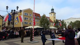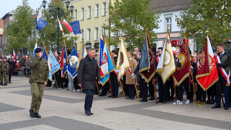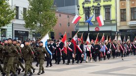 Po ceremonii i złożeniu hołdu przed pomnikiem Jana Pawła II uczestnicy obchodów - poczty sztandarowe, oficjalne delegacje, harcerze i mieszkańcy miasta - przemaszerowali na rynek.
