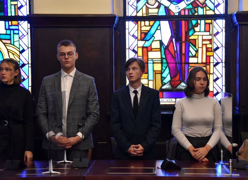 Sesja rozpoczęła się od przedstawienia nowego zarządu, w skład którego wchodzą: przewodnicząca – Marta Pinior, wiceprzewodniczący – Oskar Dulniok i Mikołaj Tabaka oraz sekretarz – Julia Kretek. Następnie odbyło się zaprzysiężenie 14 nowych radnych.