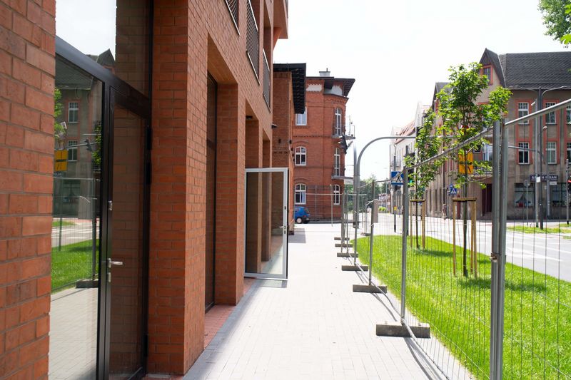 Lokale znajdują się na parterze nowego wielorodzinnego budynku mieszkalnego wybudowanego przez Towarzystwo Budownictwa Mieszkaniowego (TBS):